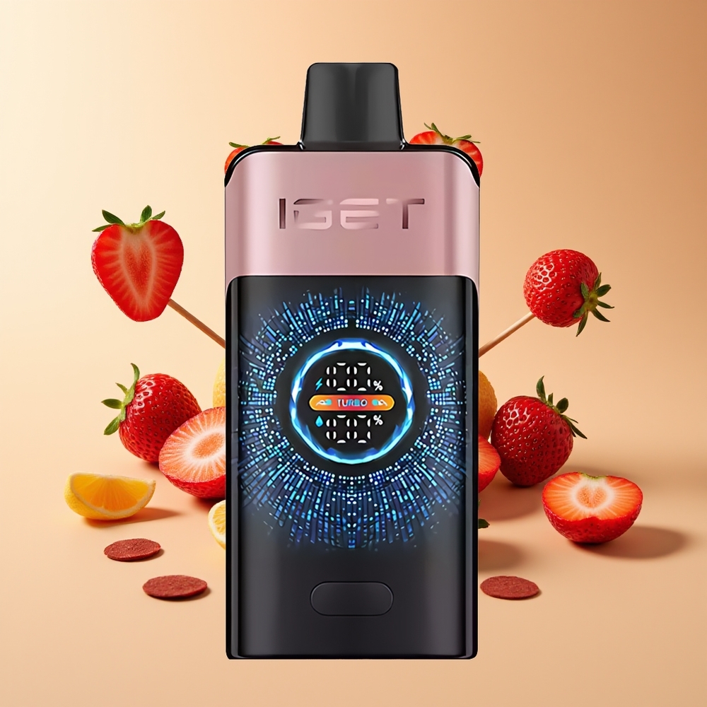 IGET ONE 12000 Puffs Wegwerp Vape Chupa Chups Aardbei Grote Gebogen Kleurenscherm 2700 mAh Batterij